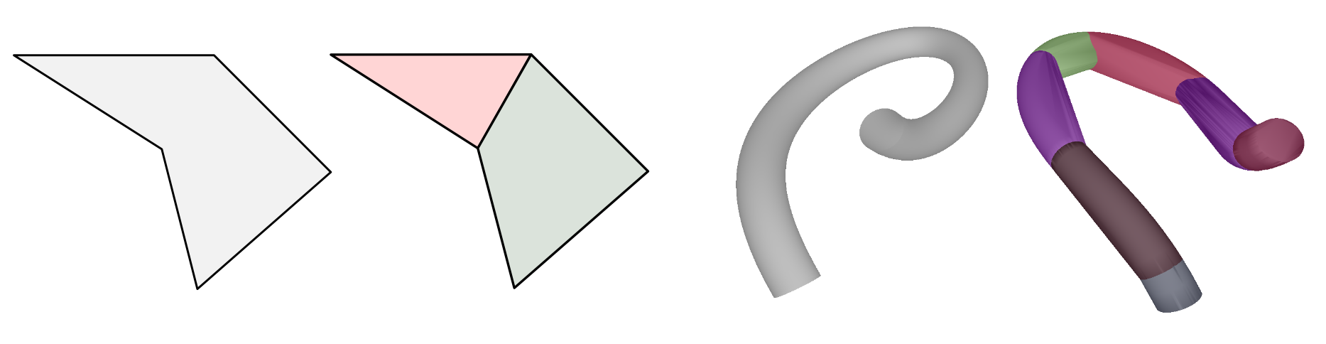 A convex mesh is a shape such that, if two points are part of the shape, then the segment between these two points is also part of the shape: